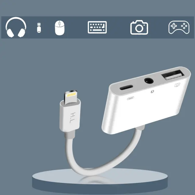Adapter Lightning na USB za prikljucitev vaše dodatne opreme USB na vaš iPhone/iPad. Adapter Lightning z vticnico 3,5 mm Jack za uporabo slušalk s 3,5 mm prikljuckom. Adapter Lightning s prikljuckom Lightning za polnjenje vašega pametnega telefona.