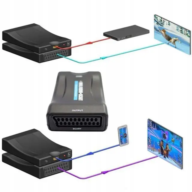 Pretvorba HDMI v SCART: Omogoča povezavo sodobnih naprav z HDMI izhodom na starejše televizorje ali AV naprave s SCART vhodom.