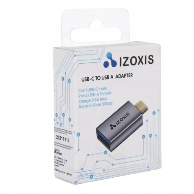 SPECIFIKACIJA – tip: USB 3.0 USB Type-C; priključek: USB-C (vtič / moški / moški); priključek: USB (vtičnica / ženski / ženski); prenos podatkov: da, 5Gbps; polnjenje naprave: da, 0,5A; material: aluminij / najlon / PVC; USB standard: 3.0; sistem: Plug & Play; mere: 3 / 0,7 / 1,5 cm; teža: 0,005 kg; teža v paketu: 0,011 kg.