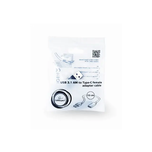 Adapter USB 3.1 A moški na Type-C ženski, 10 cm, črn