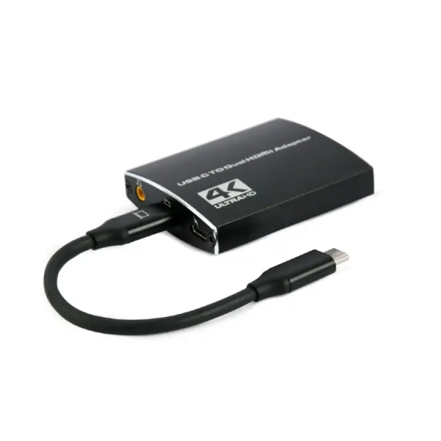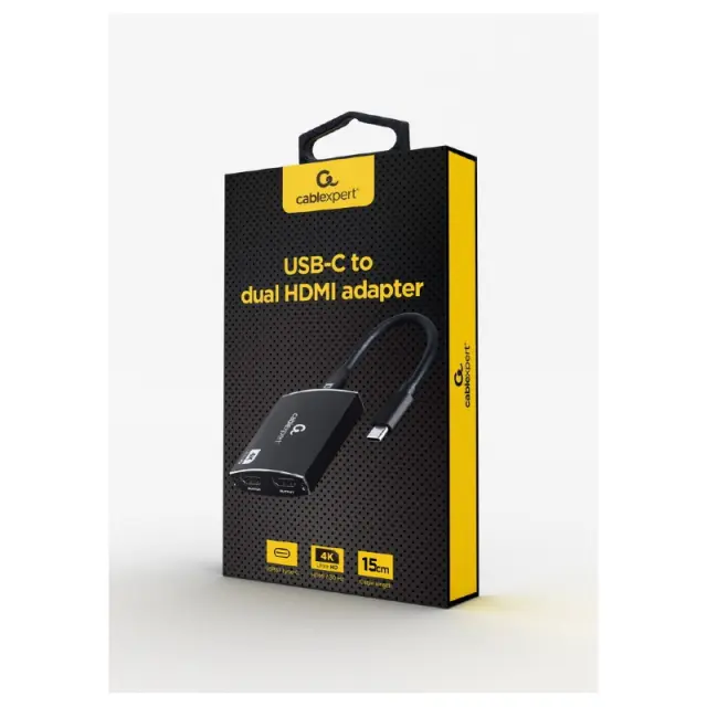 Adapter USB-C moški na 2 x HDMI ženski. Omogoča pošiljanje avdio-video iz mobilne naprave z vrati USB-C na par HDMI monitorjev, televizorjev, projektorjev. Deluje na kateri koli napravi, ki ima vrata USB Type-C, ki podpirajo video. Podpira max. Ločljivost 4K*2K 30Hz za vsak monitor. Dodaten stereo avdio 3,5 mm izhod. Oba izhoda lahko delujeta skupaj!