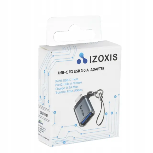 SPECIFIKACIJA – tip: USB 3.0 USB Type-C; priključek: USB-C (vtič / moški / moški); priključek: USB (vtičnica / ženski / ženski); prenos podatkov: da, 5Gbps; polnjenje naprave: da, 0,5A; material: aluminij / najlon / PVC; USB standard: 3.0; sistem: Plug & Play; dolžina vrvice: 6,5 cm; mere: 3 / 0,8 / 2cm; teža: 0,006 kg; teža v paketu: 0,012 kg.