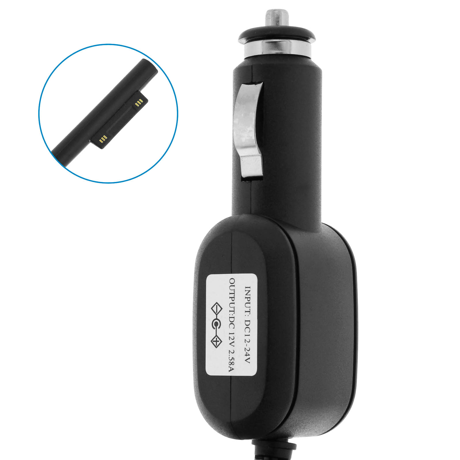 Polnilec za avtomobilski vžigalnik za Microsoft Surface Pro 3 in 4. Amperaža 2,5 A, hitro in varno polnjenje tablice. Udobno uživajte v funkcionalnosti tabličnega računalnika, ne da bi vas skrbelo, da bi se baterija izpraznila. Kar najbolje izkoristite svoj tablični računalnik.