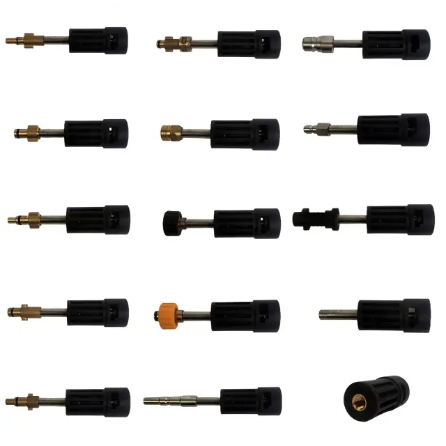 Univerzalna združljivost: Ta adapter je zasnovan za priključitev večine pištol za visokotlačne čistilce na pištole za visokotlačne čistilce Karcher serije K. Ima ženski priključek Karcher serije K in standardni moški priključek, zaradi česar je združljiv s široko paleto visokotlačnih čistilcev.
