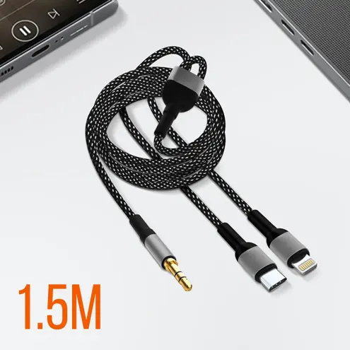 Za predvajanje glasbe povežite svojo napravo USB-C / Lightning s 3,5 mm priključkom (slušalke, zvočniki, avtoradio). Popolnoma združljiv z vsemi napravami USB-C in Apple Lightning (pametni telefoni, tablice, računalniki). Vzdržljiva najlonska zasnova za dolgotrajno uporabo. Uživajte v optimalni kakovosti zvoka brez izgube zvoka ali prekinitev.