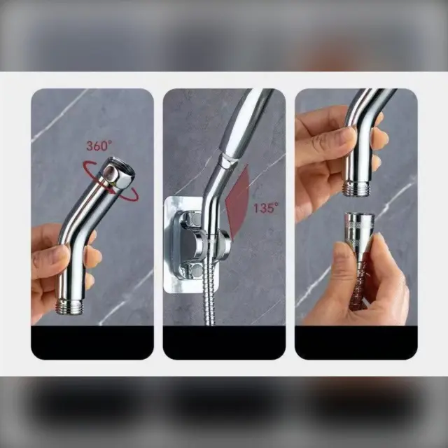 Natančni kot: Prosimo, upoštevajte: to niso originalni deli. Ta 135° nastavljivi vrtljivi spoji omogočajo natančno usmerjanje toka vode za bolj udobno prho. Zahvaljujoč gladkemu rotacijskemu mehanizmu lahko enostavno prilagodite kot tuš glave in dosežete želeno smer vode brez ponovnega nastavitev cevi ali obsežnih vodovodnih posegov. Primeren je za domačo uporabo in nastanitvene objekte, kjer uporabniki pričakujejo priročno in hitro nastavitev prhe.