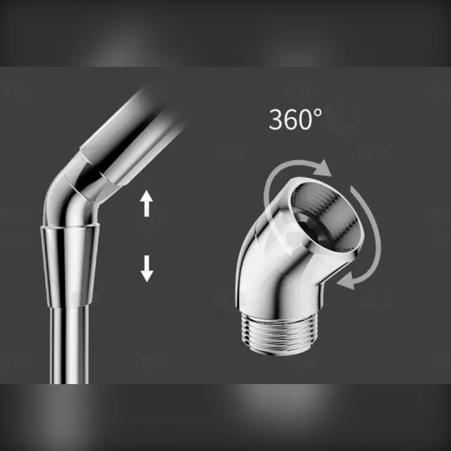 Natančen kot: Prosimo, upoštevajte: to niso originalni deli. Ta nastavljiv kot omogoča gladko vrtenje 135°, kar vam omogoča natančno usmerjanje vodnega curka za udobnejše prhanje. Zaradi možnosti natančnega pritrditve in vrtenja je idealen v scenarijih, kjer želite prilagoditi kot ročne ali fiksne prhe — na primer v gostinskih prostorih, domačih kopalnicah ali pri prenovi kopalnice. Uporabniku omogoča enostavno prilagoditev položaja prhe brez odstranjevanja cevi ali zapletene prilagoditve in ohranja stabilen pretok vode med nastavitvami.