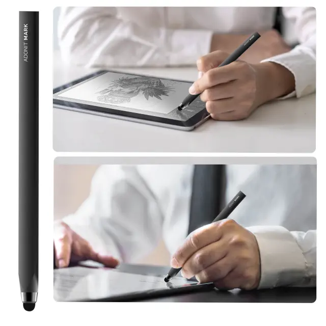 Taktilno pisalo Adonit, serija Mark, za vse pametne telefone in tablice z zaslonom na dotik. Vsestransko pisalo, idealno za vsakodnevno brskanje do intenzivnejših opravil. Ima veliko konico iz nedrseče mreže, ki omogoča natančen zaključek vaše linije. Kot nalašč za zapisovanje, risanje, pisanje in drugo.