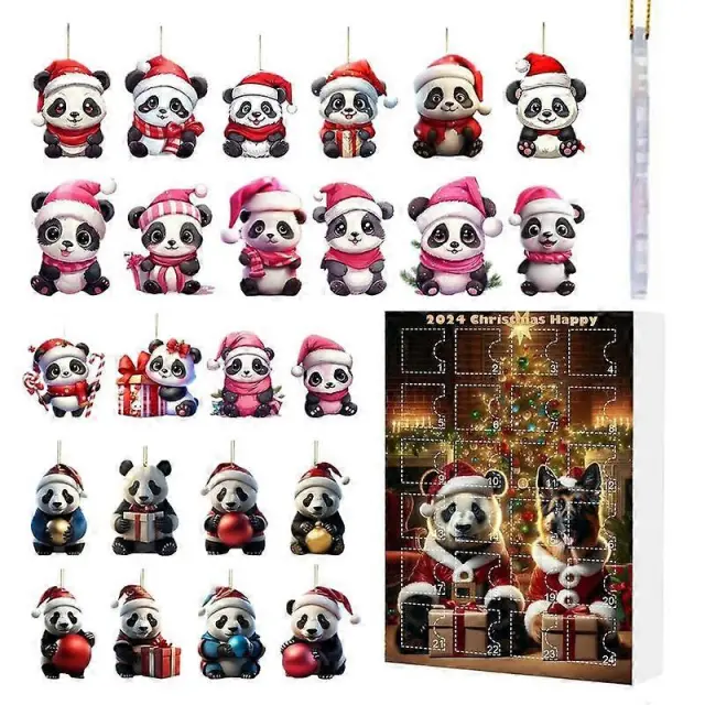 Adventni božični koledar s pandami, okraski, 24-dnevni božični adventni festival, ljubek božični odštevalni koledar, darilo
