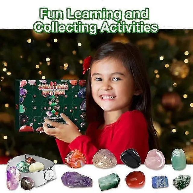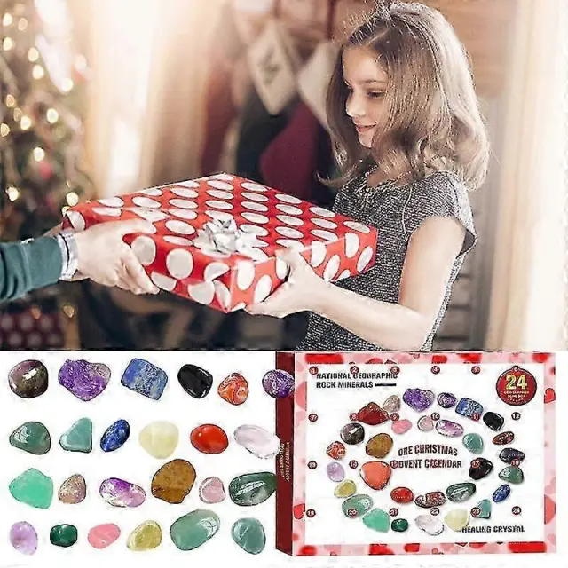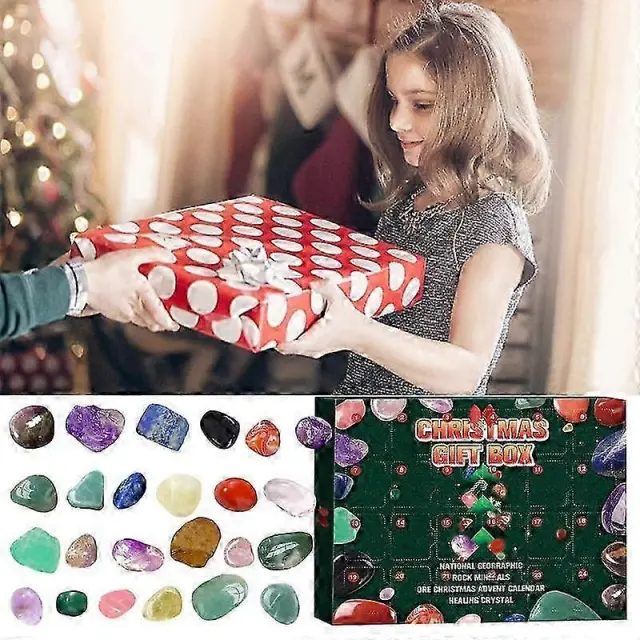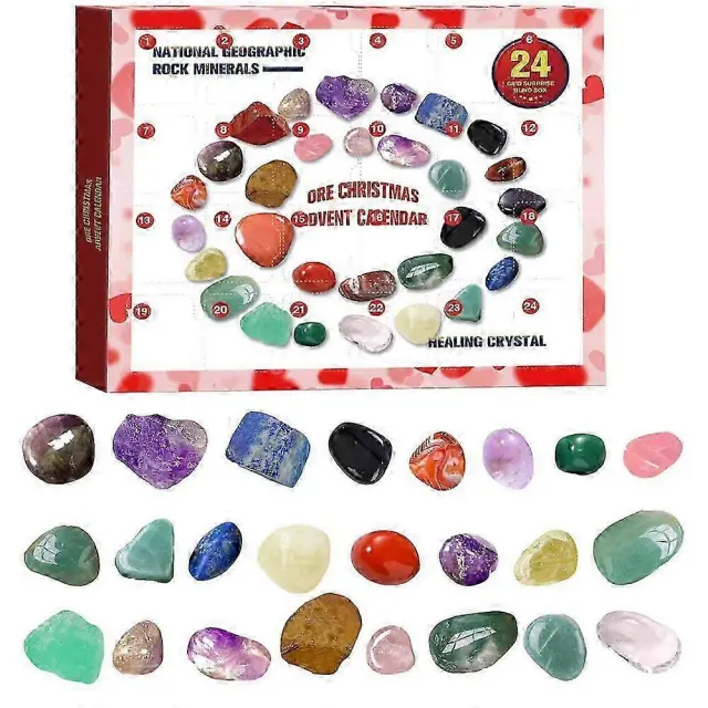 Adventni koledar 2022: 24-delna škatla za zbiranje mineralov iz naravnih kristalov in dragih kamnov za božično odštevanje