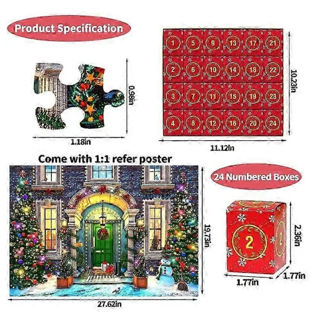 Adventni koledar 2023 Božična sestavljanka - 24-delna sestavljanka 1008 kosov Odštevanje do božiča,