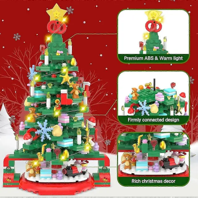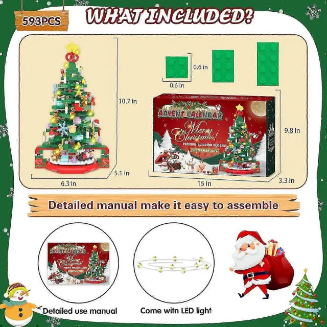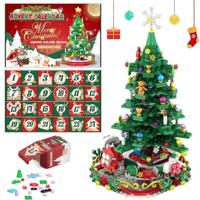 Adventni koledar 2024 Komplet gradnikov za božično drevo z LED lučko, darilo za božično 24-dnevno odštevanje, škatla presenečenja