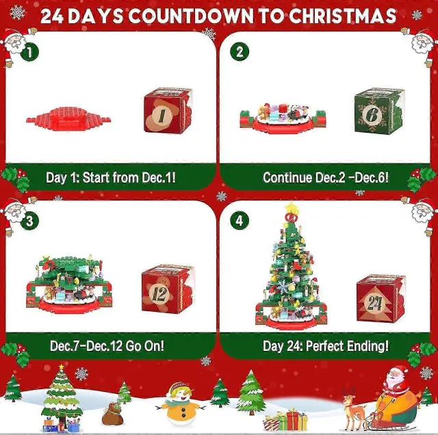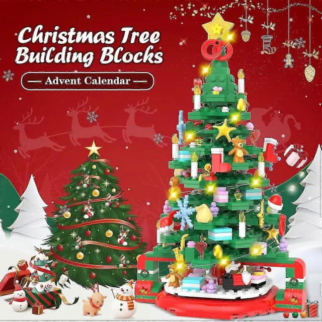 Adventni koledar 2025 Komplet gradnikov za božično drevo z LED lučko, darilo za božično 24-dnevno odštevanje, škatla presenečenja