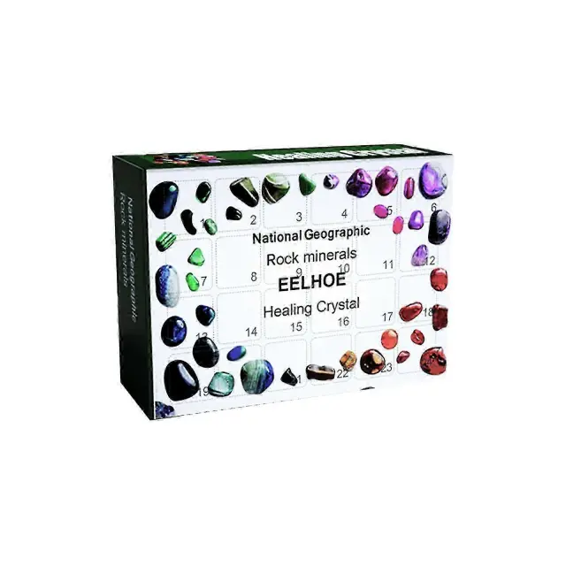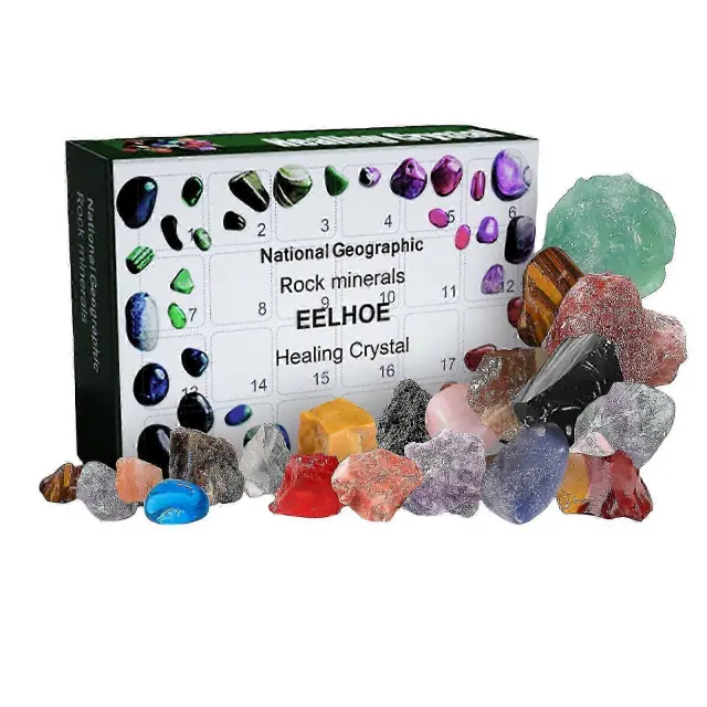 Adventni koledar - 24 mrežnih kamnin, mineralov in fosilov, komplet zdravilnih kristalov, draguljev, 24 dni božiča--