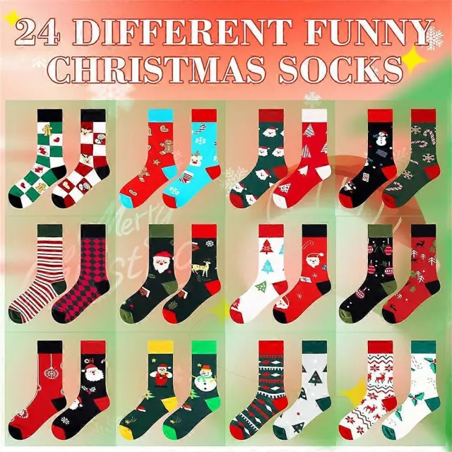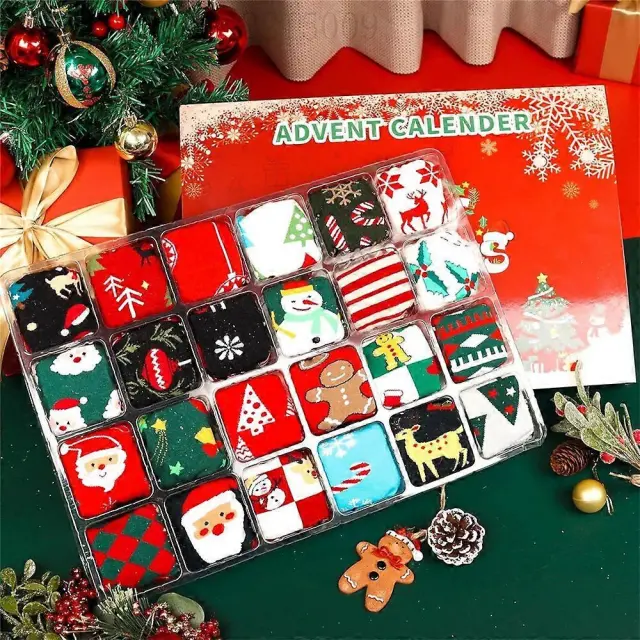 Adventni koledar božičnih nogavic 2024, 24-dnevni koledar božičnih odštevalnih nogavic, komplet božičnih nogavic za odrasle
