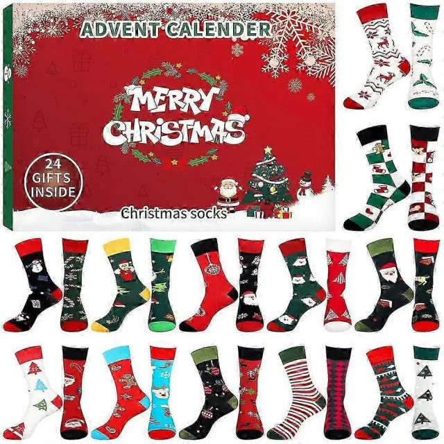 Adventni koledar božičnih nogavic 2024, smešne božične nogavice za ženske adventni koledar, komplet božičnih nogavic za odrasle