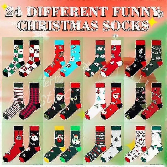 Adventni koledar božičnih nogavic 2024, smešne božične nogavice za ženske Adventni koledar, komplet božičnih nogavic za odrasle