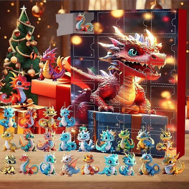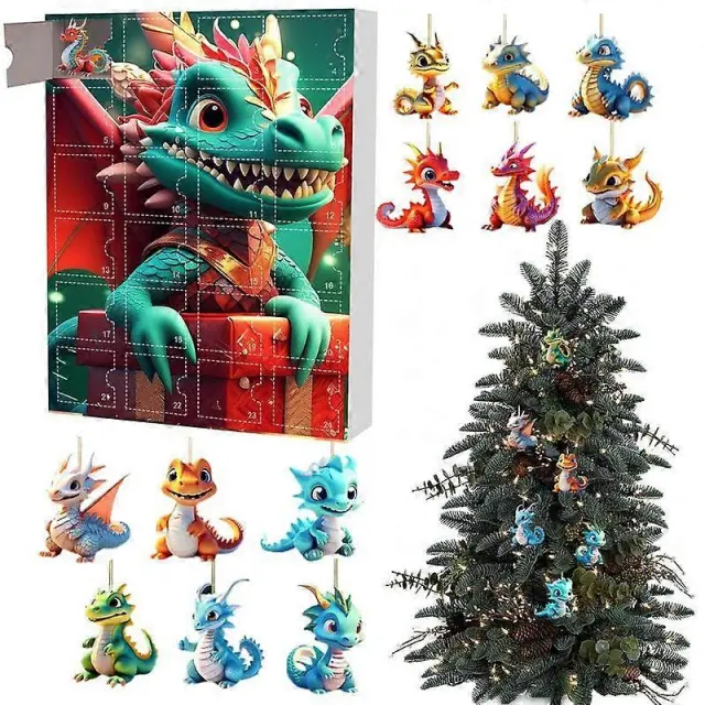 Adventni koledar Dragon za otroke Akril 2D 24 Days Of Vacation Adventni koledar Obesek Božično darilo Dekoracija doma Igrače Otrok
