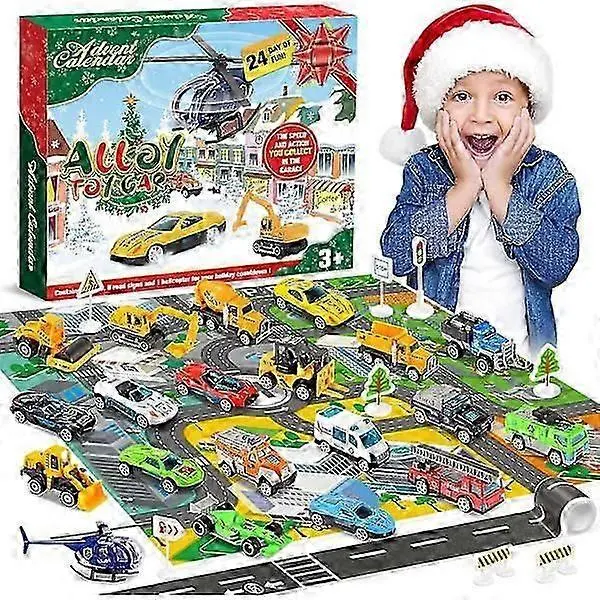 Adventni koledar Igrača Otroški Božič, Avto Gasilsko Vozilo Policijsko Avto Tehnična Vozila 24 kosov Adventni Koledar