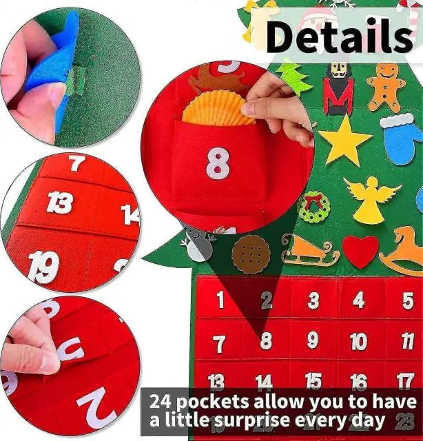 Adventni koledar iz filca za božično drevo, božični adventni koledar z žepi Božičkov adventni koledar Wi