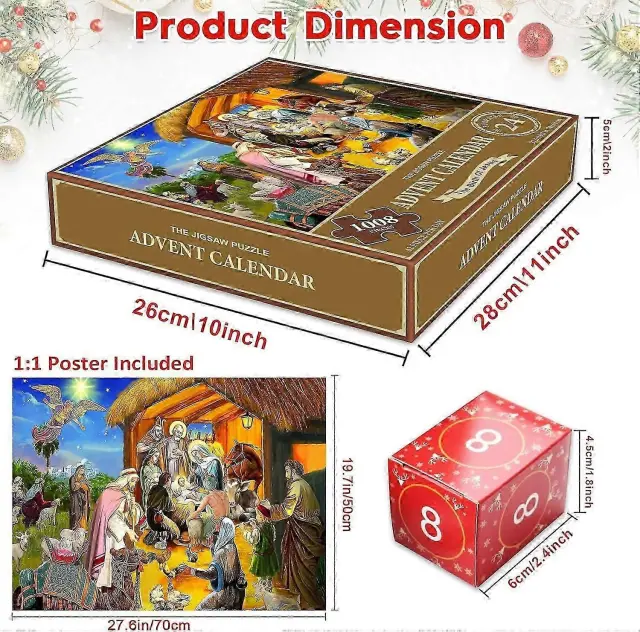 Adventni koledar Jigsaw Puzzle - praznovanje rojstva, 1008 kosov sestavljanke, odštevanje do božiča, idealna darila za odrasle in otroke