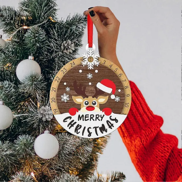 Adventni koledar kravjega severnega jelena za božič – lesen viseči odštevalnik