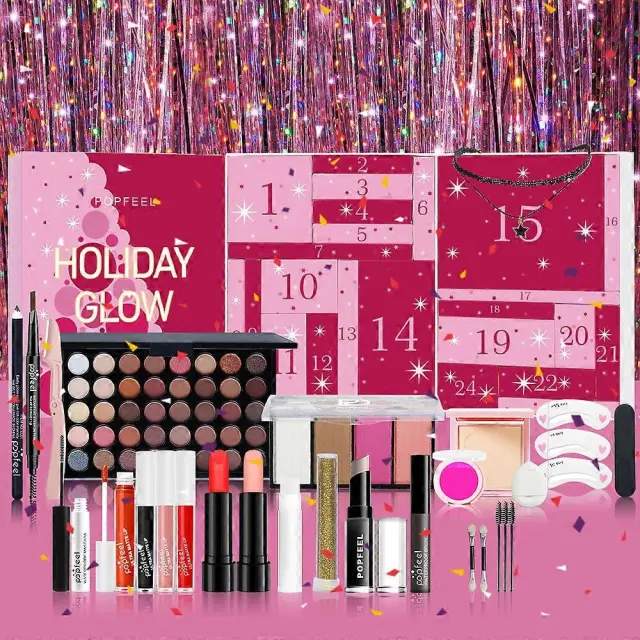Adventni koledar ličil Lepota Adventni koledar 2024 Božič, 24-dnevni odštevalnik Koledar Škatle za ličila za nego kože