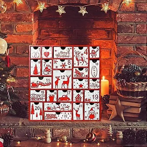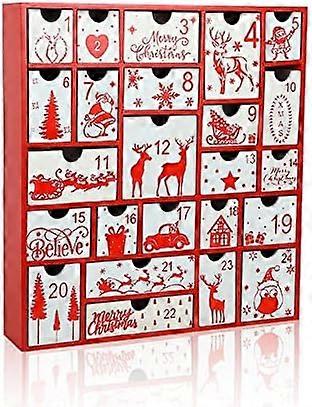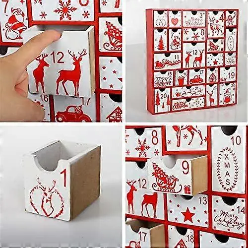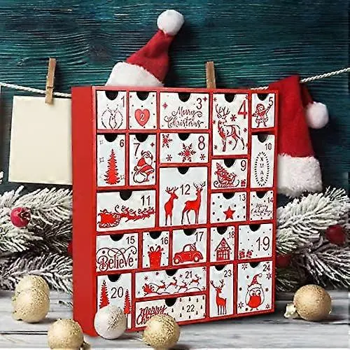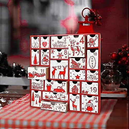 Adventni koledar s 24 predali za shranjevanje Odštevanje do božiča, 24-dnevna rdeča lesena božična adventna dekoracija