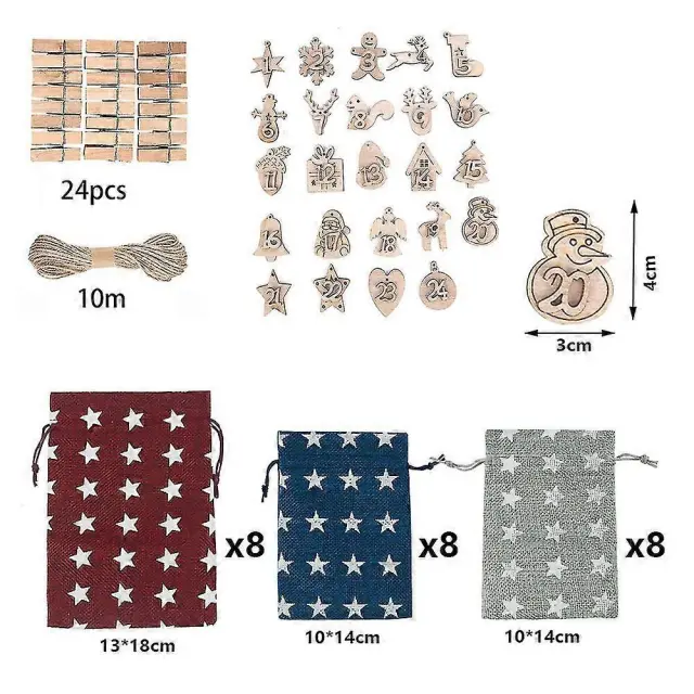 Adventni koledar z božičnim odštevanjem, torba iz blaga za otroke, adventni koledar z lesenimi številkami, božično darilo za otroke, moške, že