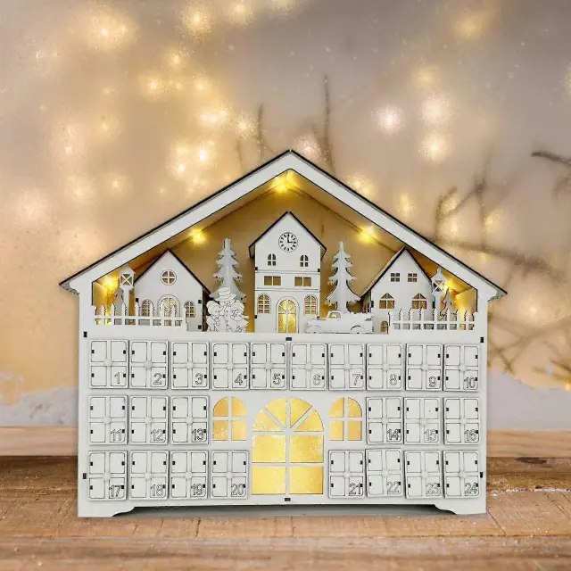 Adventni koledar z LED lučkami na temo božičnega drevesa in severnih jelenov Prenosni odštevalniki do božiča s 24 predali