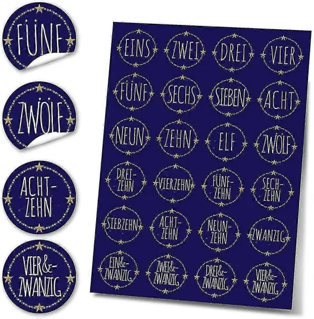 Adventni koledar za izpolnitev, 24 nalepk z risanimi številkami za božič