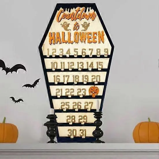 Adventni koledar za noč čarovnic, lesen okrasek za odštevanje do noči čarovnic s premičnim blokom buče