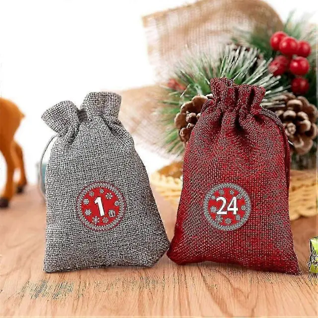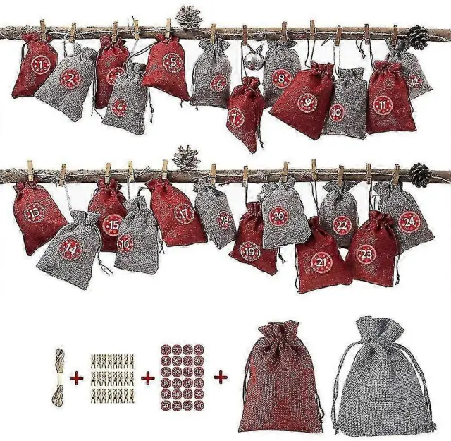 Adventni koledar za polnjenje, 24 vrečk iz filca in vrečk iz blaga za božično dekoracijo