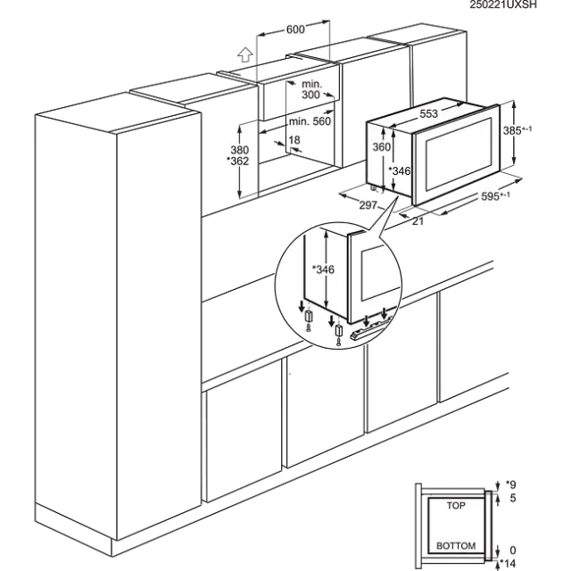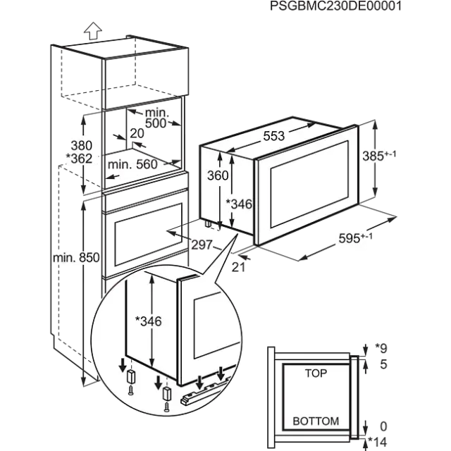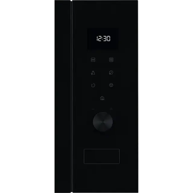 Elegantna, minimalistična zasnova mikrovalovne pečice v črni barvi visokega sijaja se ujema s pečico in drugimi aparati.