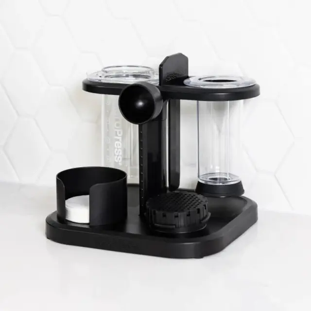 Doživite najboljšo organizacijo kave s stojalom za AeroPress. Oblikovano za kavnega ljubitelja, je to stojalo nepogrešljivo za vse ljubitelje kave. Ne glede na to, ali imate AeroPress Original, Clear ali XL Coffee Maker, je to stojalo prilagodljivo, da se prilega vašim potrebam. Ni združljivo s AeroPress Go. (Kavni aparat ni vključen).