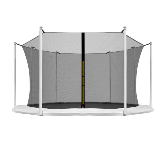 Ta nadomestna varnostna mreža je popolna zamenjava za vaš originalni del a lse lahko uporablja tudi na trampolinih drugih proizvajalcev, pri čemer je pomembno, da ohranite prvotne dimenzije mreže (velikost) in število tulcev (ročajev) za stoječe palice.