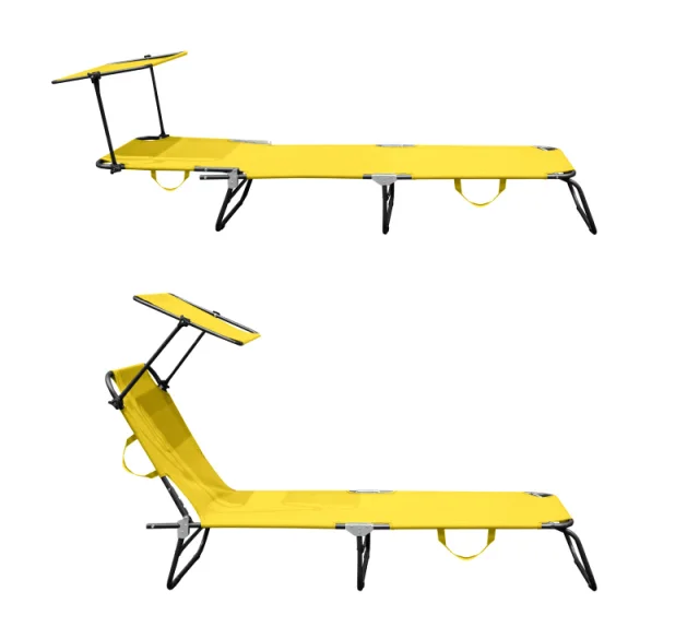 Zložljivi vrtni ležalnik z ojačano jekleno konstrukcijo, modernega dizajna, primeren za vrtove, kampiranje ali plaže.