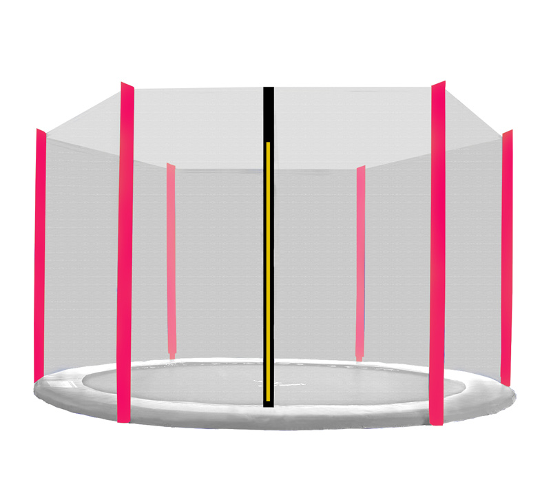 Ta nadomestna varnostna mreža je popolna zamenjava za vaš originalni del a lse lahko uporablja tudi na trampolinih drugih proizvajalcev, pri čemer je pomembno, da ohranite prvotne dimenzije mreže (velikost) in število tulcev (ročajev) za stoječe palice.