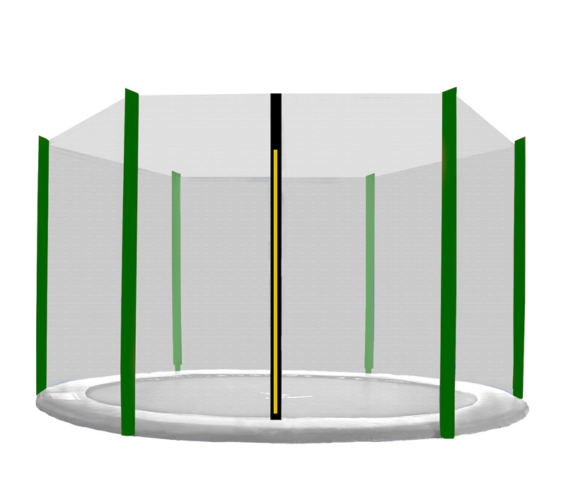 Ta nadomestna varnostna mreža je popolna zamenjava za vaš originalni del a lse lahko uporablja tudi na trampolinih drugih proizvajalcev, pri čemer je pomembno, da ohranite prvotne dimenzije mreže (velikost) in število tulcev (ročajev) za stoječe palice.