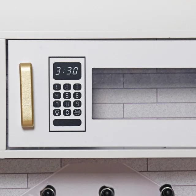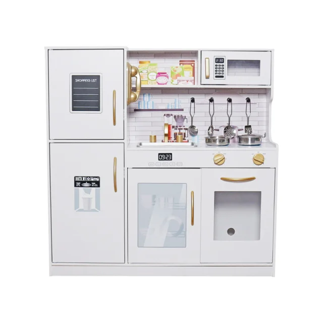 Ta model otroške kuhinje je opremljen z različnimi funkcionalnimi elementi in dodatki. Kuhinja je dovolj velika, da se v njej lahko igra več otrok hkrati.