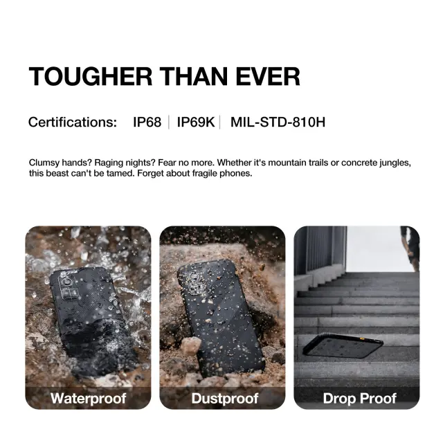AGM odporni pametni telefon H6 4G 4+4GB/128GB DS Android 13, Kamera 50MP dual AI - črn
