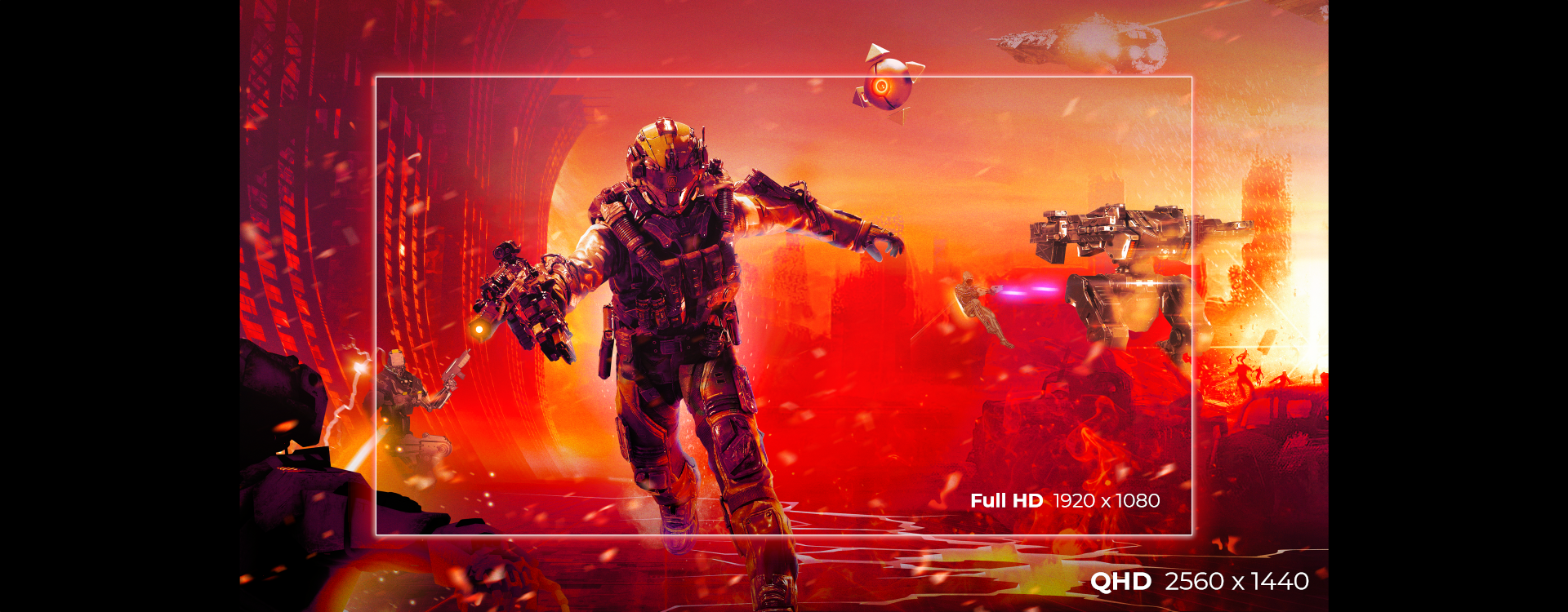 Z ločljivostjo 2560 x 1440 pik ponuja Quad HD (QHD) vrhunsko kakovost slike in ostro sliko, ki razkriva najfinejše podrobnosti. Širokozaslonsko razmerje 16 : 9 zagotavlja veliko prostora za razprostiranje in delo ter omogoča uživanje v igrah ali filmih v izvirni velikosti.