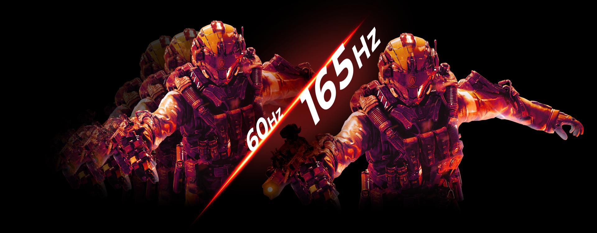 Osveževalna frekvenca 165 Hz, kar je dvakrat več od industrijskega standarda 60 Hz, omogoča, da igre tečejo gladko kot svila. Izkoristite potencial svoje grafične kartice. Pozabite na trganje zaslona in zameglitev gibanja. Občutite, da so vaši refleksi združeni z dogajanjem. Nikoli ne poglejte nazaj.