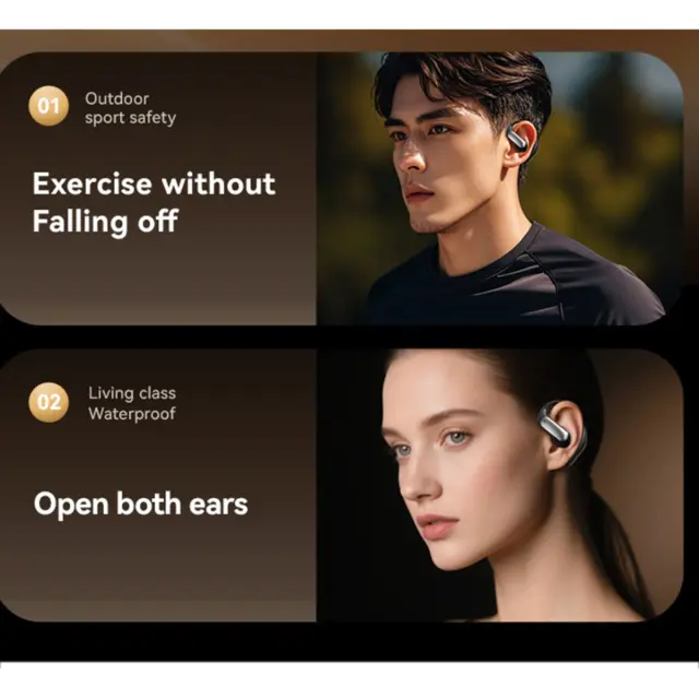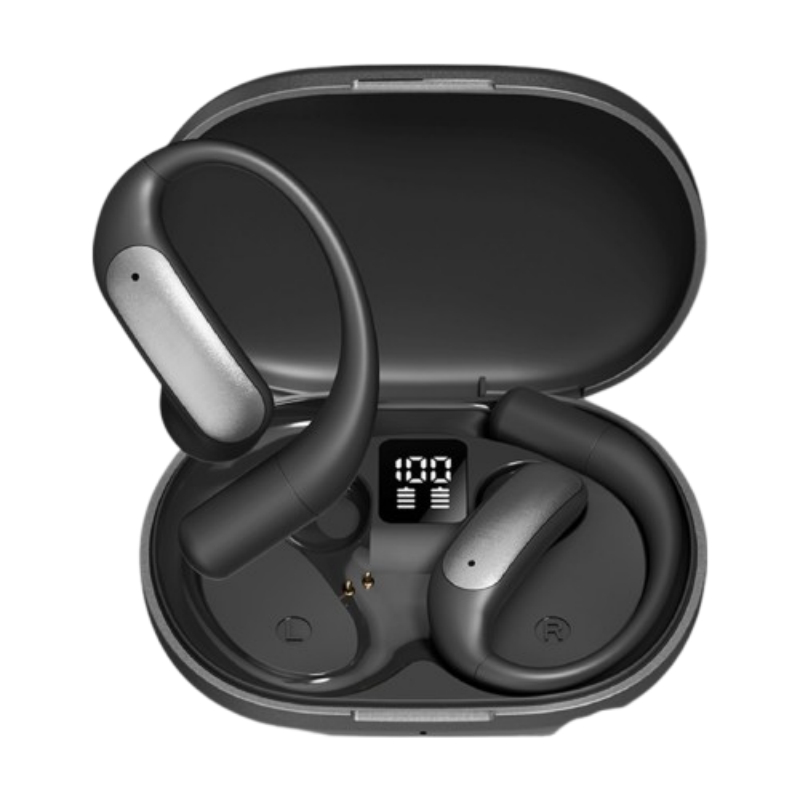Open-Ear Comfort Design: Uživajte v celodnevnem udobju z odprtim dizajnom teh Bluetooth slušalk. Za razliko od tradicionalnih ušesnih čepkov, te slušalke nežno počivajo na vaših ušesih, ne da bi blokirale ušesni kanal, kar vam omogoča, da ostanete pozorni na svojo okolico, medtem ko uživate v svoji najljubši glasbi ali podcastih. Popolne za aktivnosti na prostem, vadbe ali preprosto ohranjanje povezave ves dan, odprt dizajn zagotavlja udobno in varno prileganje. Doživite novo raven udobja in zavedanja s temi inovativnimi slušalkami, zasnovanimi za vaš aktiven življenjski slog. Ergonomska oblika zmanjšuje pritisk in povečuje udobje, tudi med dolgotrajno uporabo.
