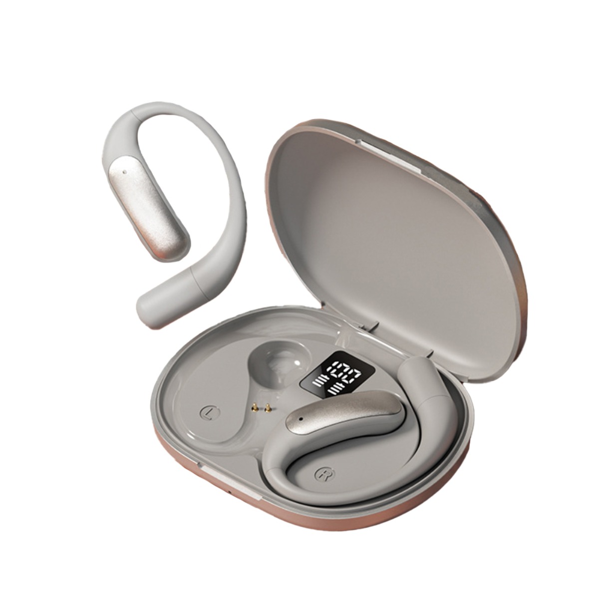 Open-Ear Comfort Design: Uživajte v celodnevnem udobju z odprtim dizajnom teh Bluetooth slušalk. Za razliko od tradicionalnih ušesnih čepkov, te slušalke nežno počivajo na vaših ušesih, ne da bi blokirale ušesni kanal, kar vam omogoča, da ostanete pozorni na svojo okolico, medtem ko uživate v svoji najljubši glasbi ali podcastih. Popolne za aktivnosti na prostem, vadbe ali preprosto ohranjanje povezave ves dan, odprt dizajn zagotavlja udobno in varno prileganje. Doživite novo raven udobja in zavedanja s temi inovativnimi slušalkami, zasnovanimi za vaš aktiven življenjski slog. Ergonomska oblika zmanjšuje pritisk in povečuje udobje, tudi med dolgotrajno uporabo.
