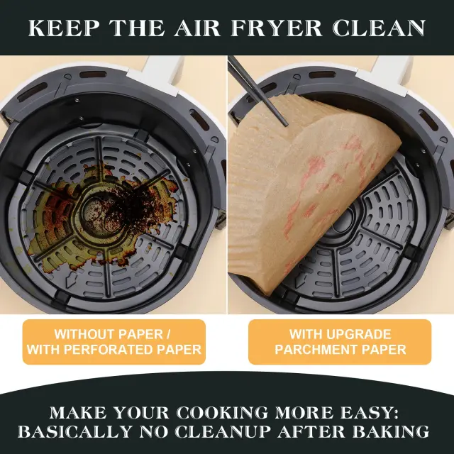 Pametnejši papir za peko: Zaščitni papir ohranja vaš Air Fryer čist in svež ter zmanjša potrebo po čiščenju po uporabi. Prav tako praktičen za uporabo kot papir za peko v pečici ali mikrovalovni pečici.