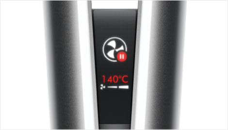 Naprava zazna, ko so lasje med vašimi rokami, in samodejno zmanjša pretok zraka, ko niso – za tišje in učinkovitejše oblikovanje.