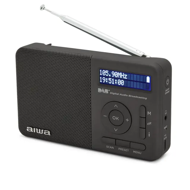 Radijski sprejemnik Aiwa RD-40DAB ima privlačno obliko in majhno velikost, zato je idealen za pogosto prenašanje. Upravljanje je enostavno in intuitivno. Zaradi vgrajenega 2W zvočnika se lepo sliši, lahko pa nanj priključite tudi slušalke. Vgrajena baterija s kapaciteto 2000 mAh omogoča delovanje 16 ur.