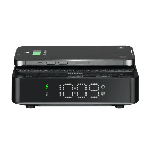 AIWA Radijska budilka z brezžičnim polnilcem, CR-30BK