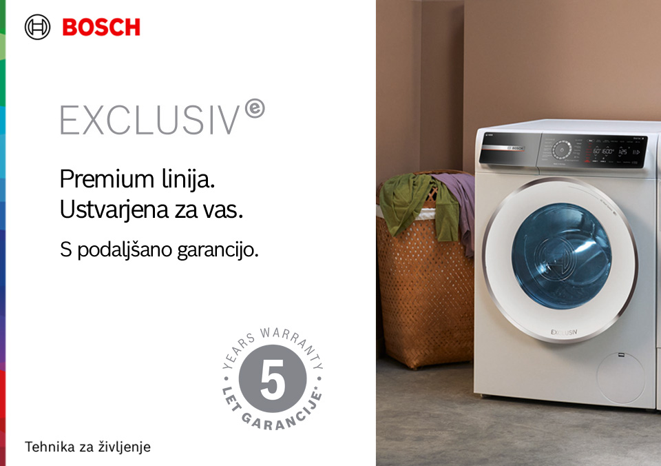 Izbranim pralnim in sušilnim strojem Bosch smo podaljšali garancijo za kar 3 leta! Skupaj torej prejmeš 5 let garancije na izbrane izdelke. Ponudba velja do 15. 1. 2026.